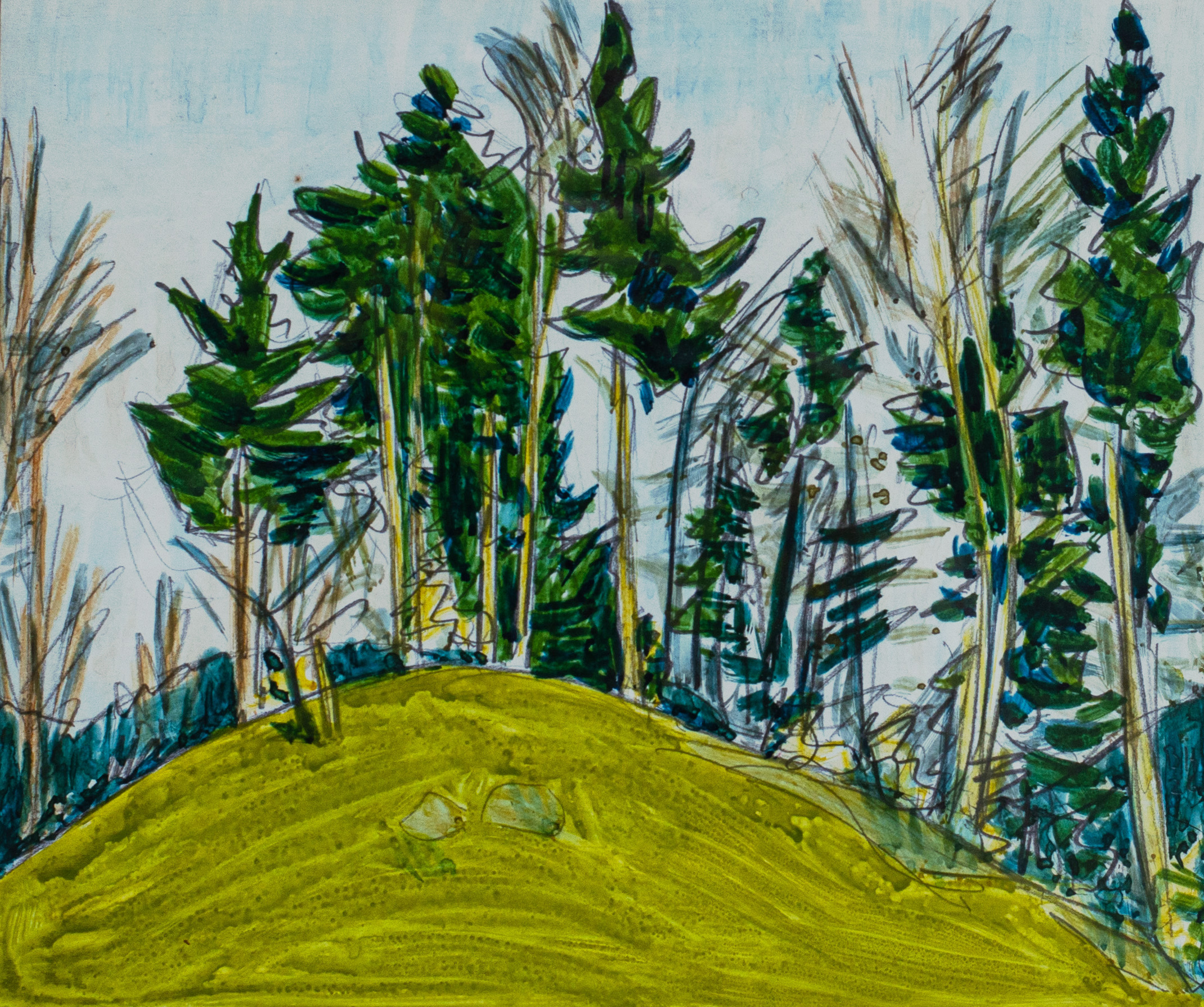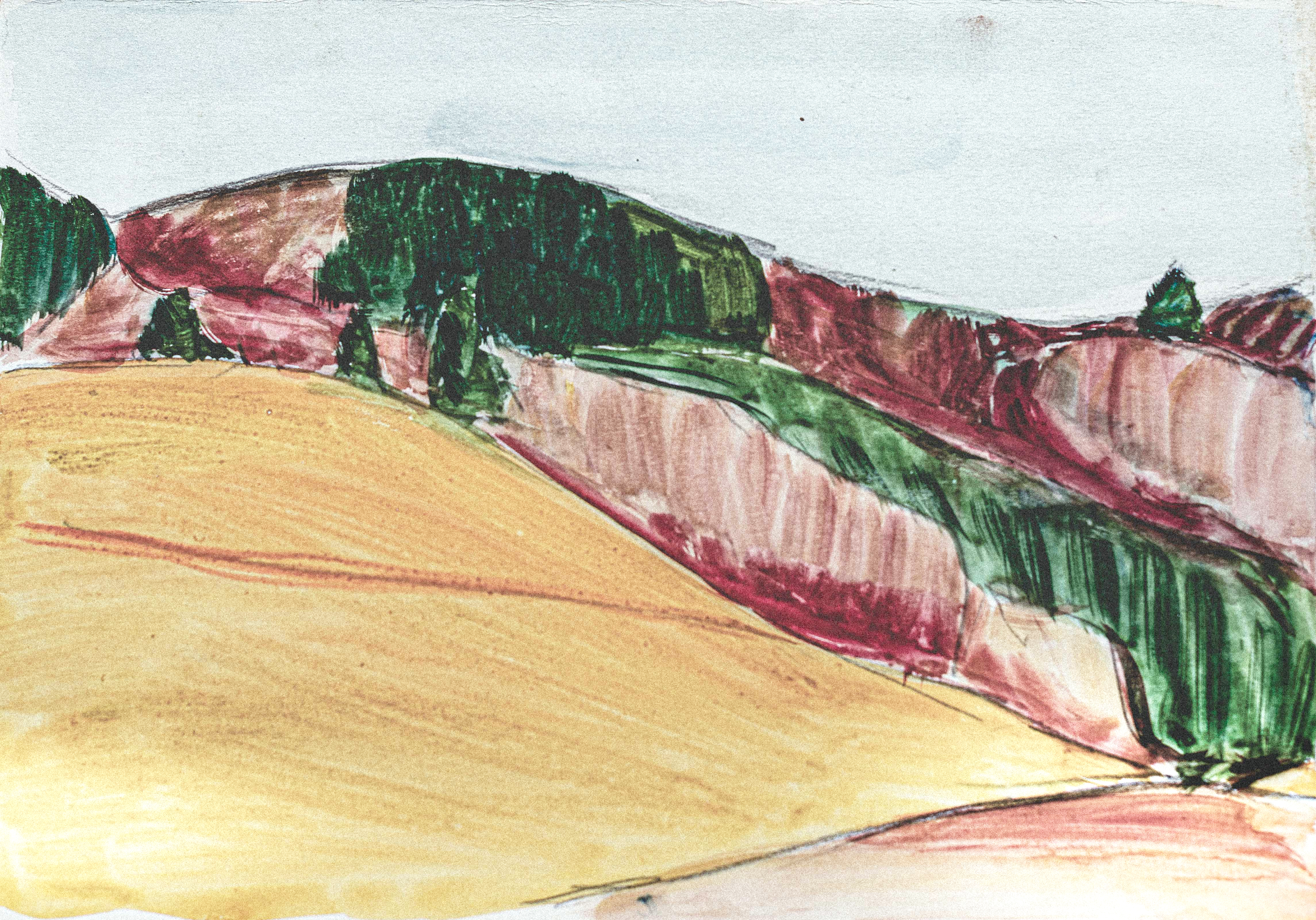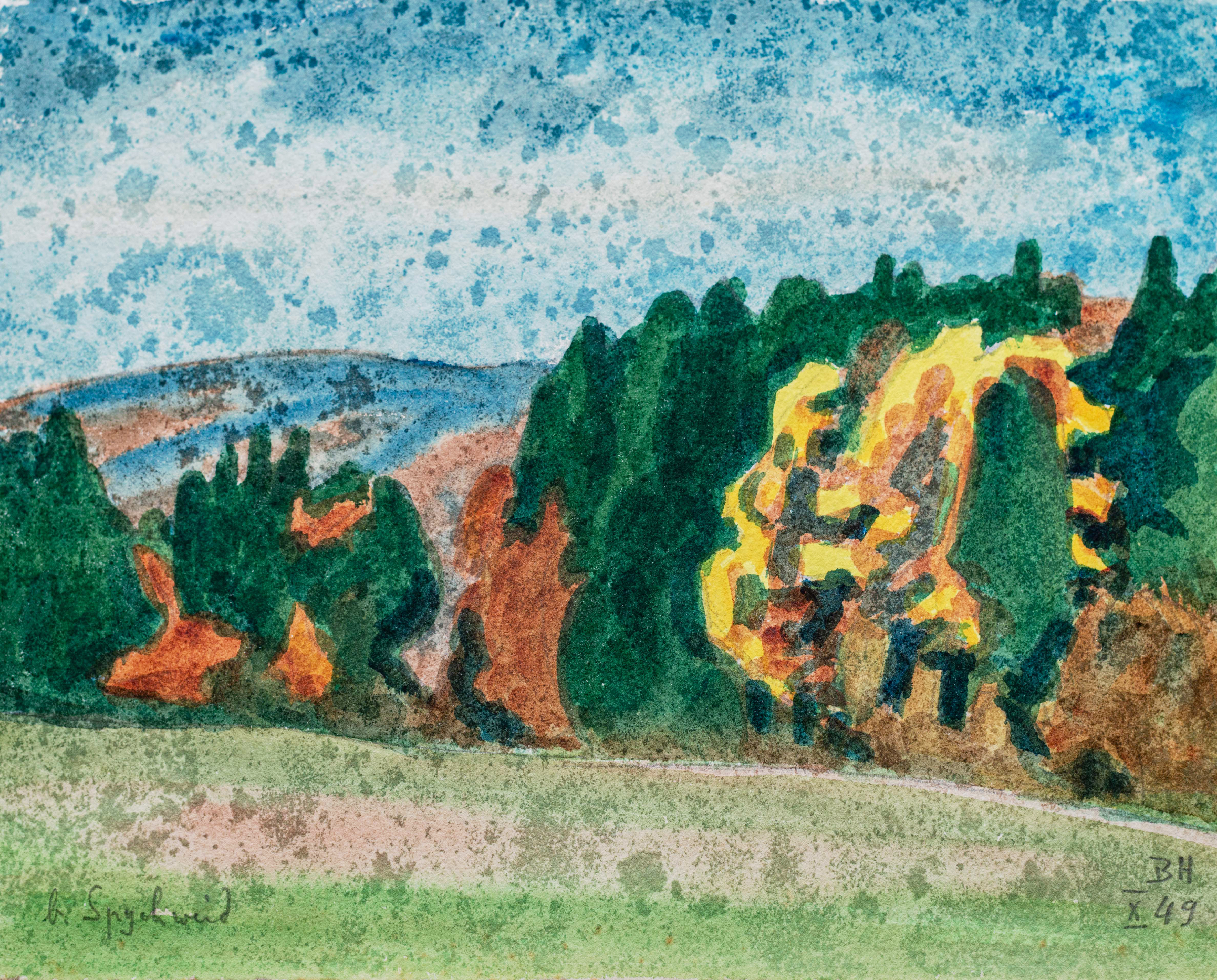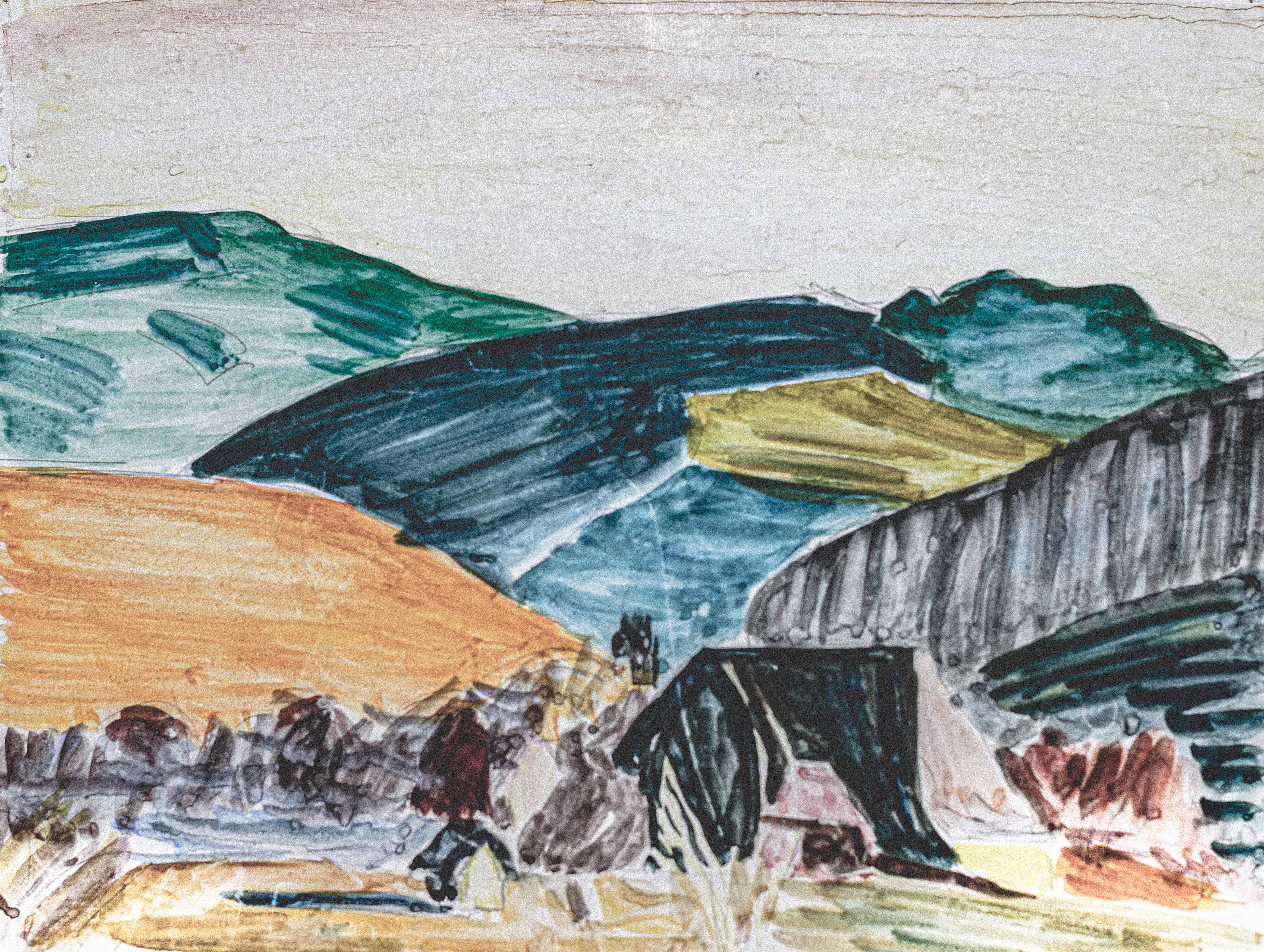 Fritz Widmer, Berner Troubadour, Schriftsteller und Ehemann von Brunos Tochter Christina, schrieb dereinst über seinen Schwiegervater: «Trotz grosser Reiselust und den vielen Wanderungen blieb Bruno Hesse der Oschwand treu. Und er wurde schliesslich hier sesshaft. 1936 heiratete er Kläri Friedli aus Spych. Das Paar lebte mit seinen beiden Kindern Christina und Simon zunächst kurz in Juchten, dann zeitlebens in Spych. Bruno Hesse war vor allem in der Region des Oberaargaus bekannt, dessen Wälder, Landschaften, Häuser, Gärten, Blumen, Bäche und Stimmungen er auf eine Weise malte, die den Leuten ihre Heimat offensichtlich sehr nahe brachte, wenn man sieht, in wie vielen Häusern seine unverwechselbaren Bilder – wenige Ölgemälde, viele Aquarelle, Holz- und Linolschnitte – zu bewundern sind.» In der ADHOCgalerie wird die Breite und Tiefe seines Schaffens sichtbar. Das sind Bruno Hesses Blicke auf Land und Leute.