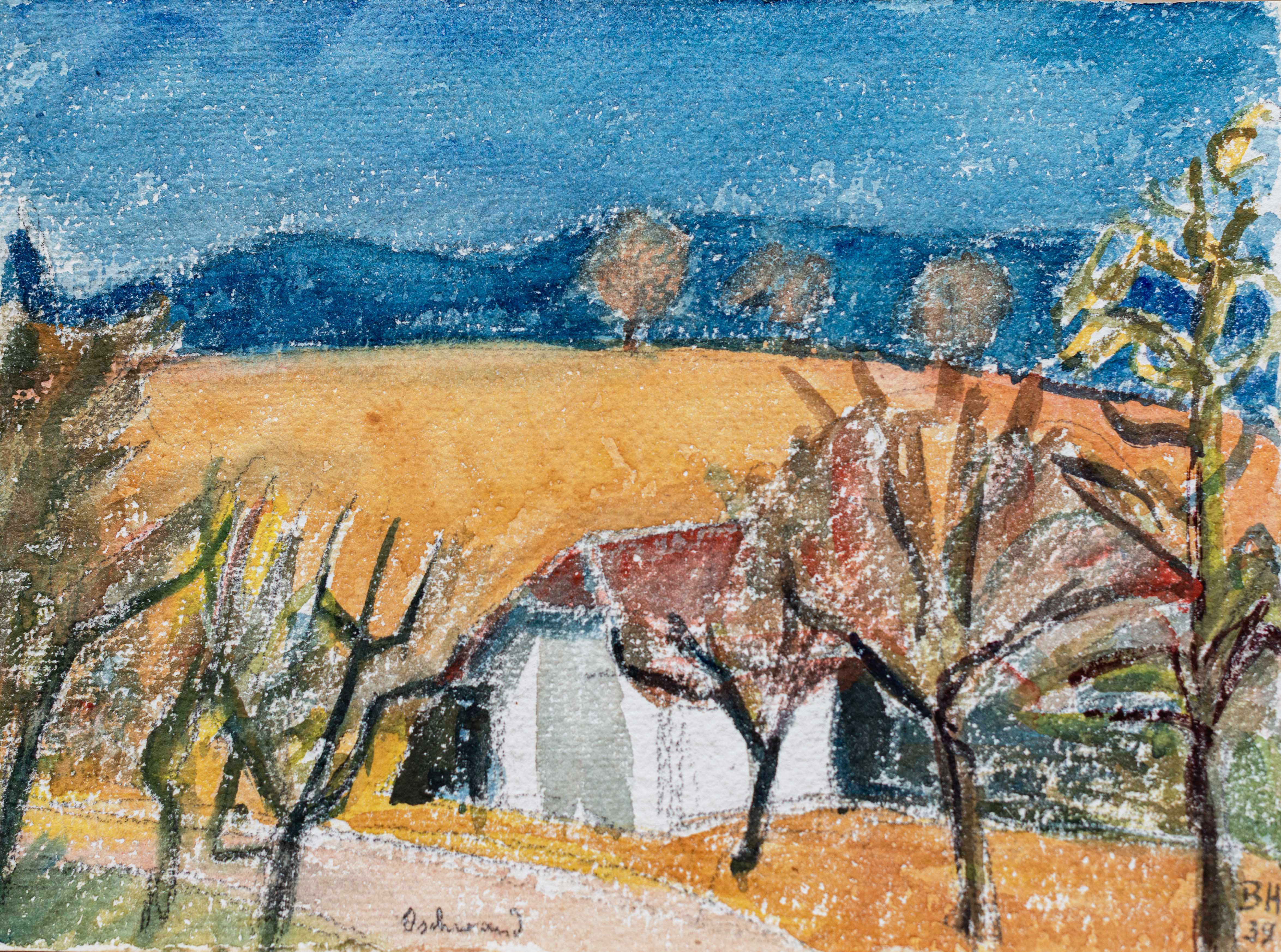 Bruno Hesse (1905 bis 1999) wuchs als Sohn des Literaturnobelpreisträgers Hermann Hesse (1877 bis 1962) bei Kunstmaler Cuno Amiet und dessen Frau Anna Luder auf. Er kam 1920 als knapp Fünfzehnjähriger nach Oschwand. Hier, in Genf und Paris bildete er sich zum Kunstmaler aus. Er lebte zeitlebens in der Gegend, die er in seinen Werken meisterhaft porträtierte.
